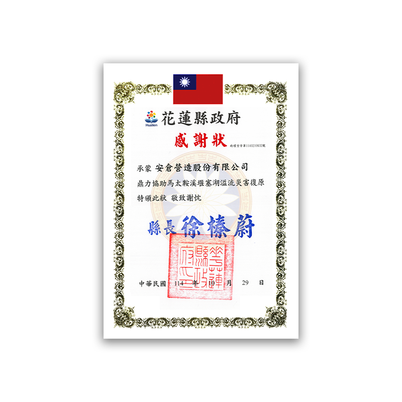 花蓮縣政府感謝狀